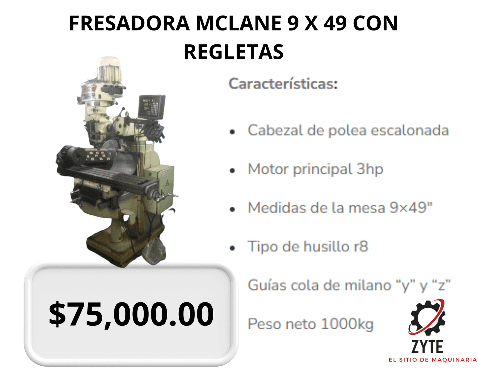 FRESADORA MCLANE 9 X 49 CON REGLETAS