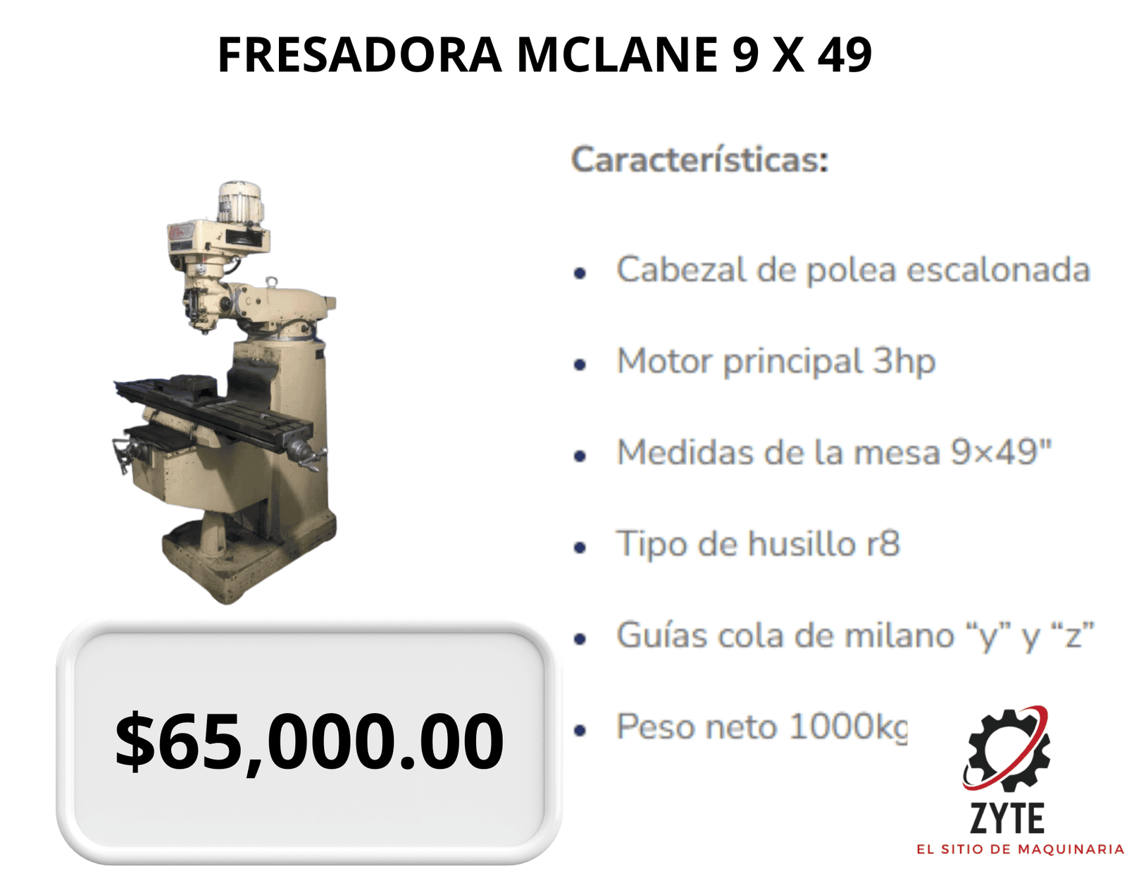| Cono del husillo | R8, baleros de precisión clase #7 |